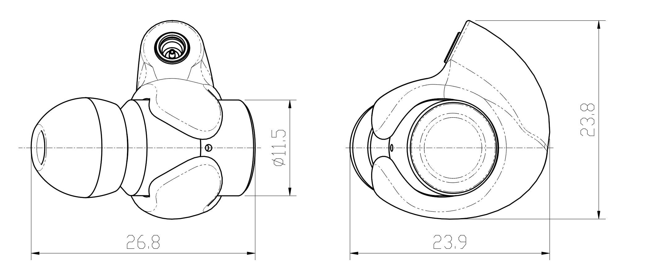 サイズ/重量:約W23.9×H22×D26.8mm / 約7g(片耳)