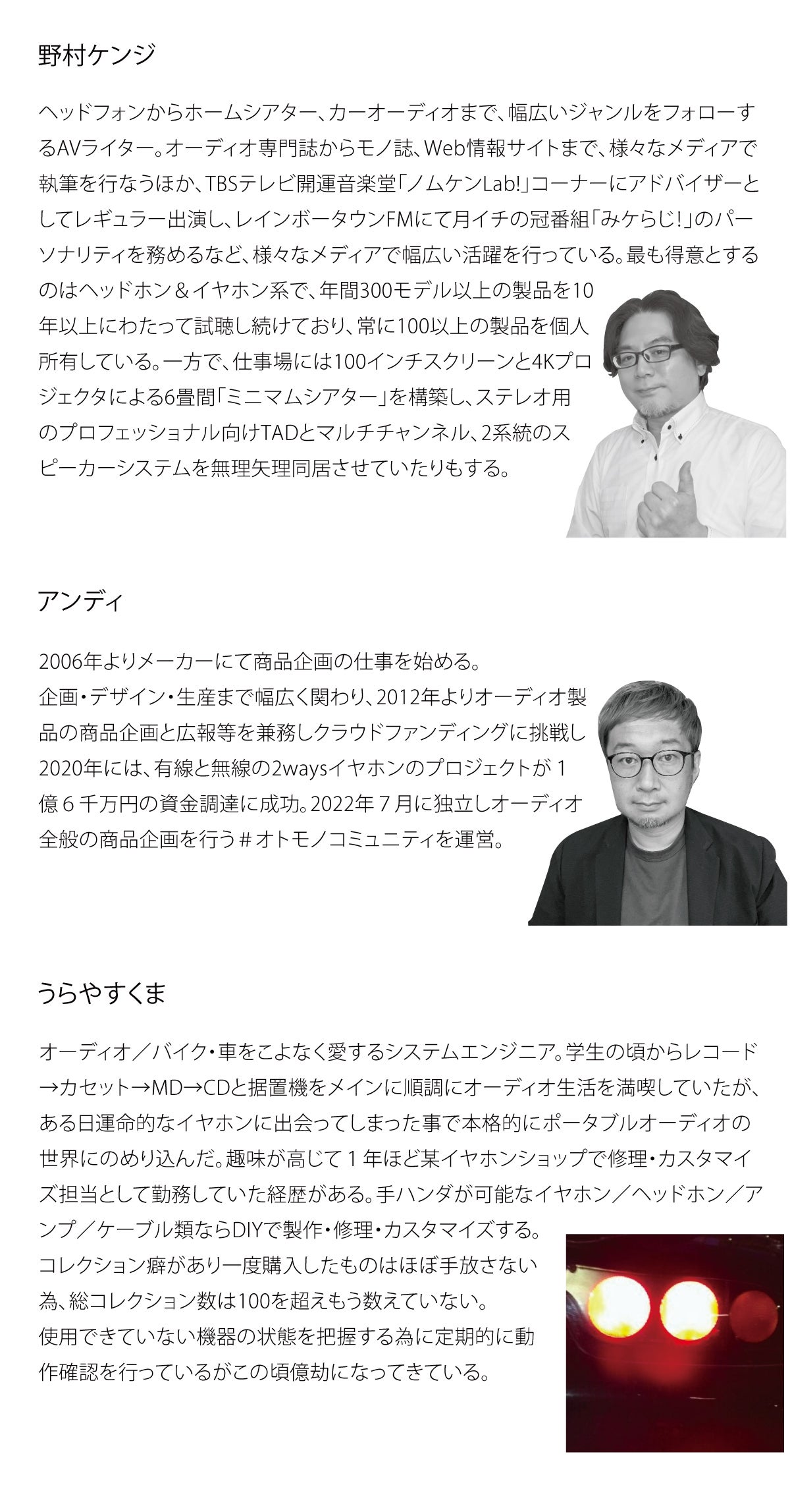 クラウドファンディングの興奮が忘れられず、いつかまたみんなでイヤホンを作る企画をスタートさせたいと常々思っていました。そんな中で昨年2022年の7月に「#オトモノ」というコミュニティをスタートさせて、オーディオ好きなメンバーと一緒にものづくりをはじめました。