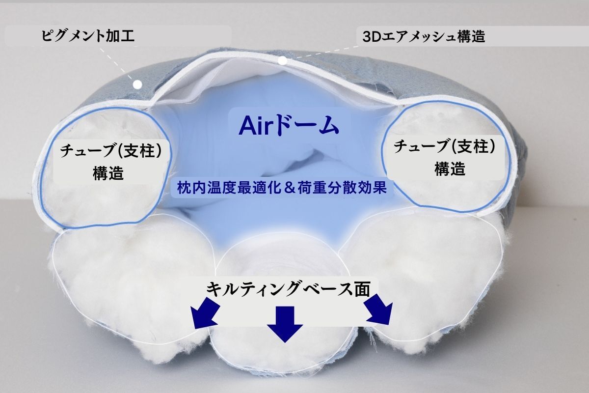 支柱部分はそのままなので、KUKI PILLOWの最大の利点であるAirゾーン構造が形成されます。