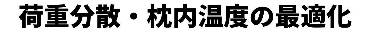 1日のうち10〜30回は寝返りをしているといわれています。KUKI PILLOWは、支柱構造に囲まれAirドームを形成しているので、寝返りの度にポンプ動作が作用し枕内部の空気を循環・換気させます。