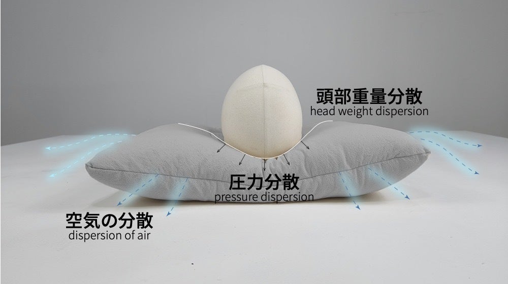 頭部分の荷重は分散され支柱構造部分に詰められたマイクロファイバーが優しく支えます。