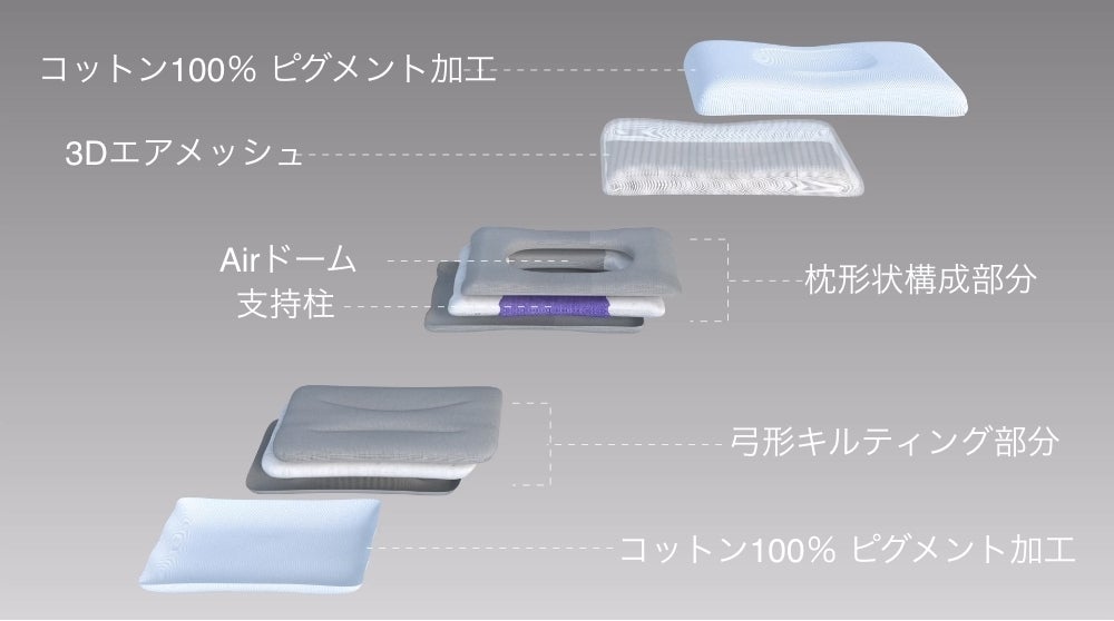 枕中心部は詰め物ではなくAirドーム構造のため、仰向けだけではなくあらゆる寝姿勢に対応します。