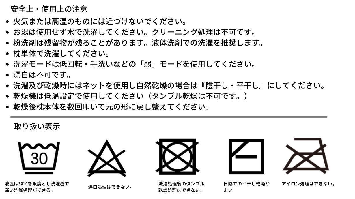 ・洗濯終了後は取り外して、枕全体の形を整えてから陰干ししてください。
