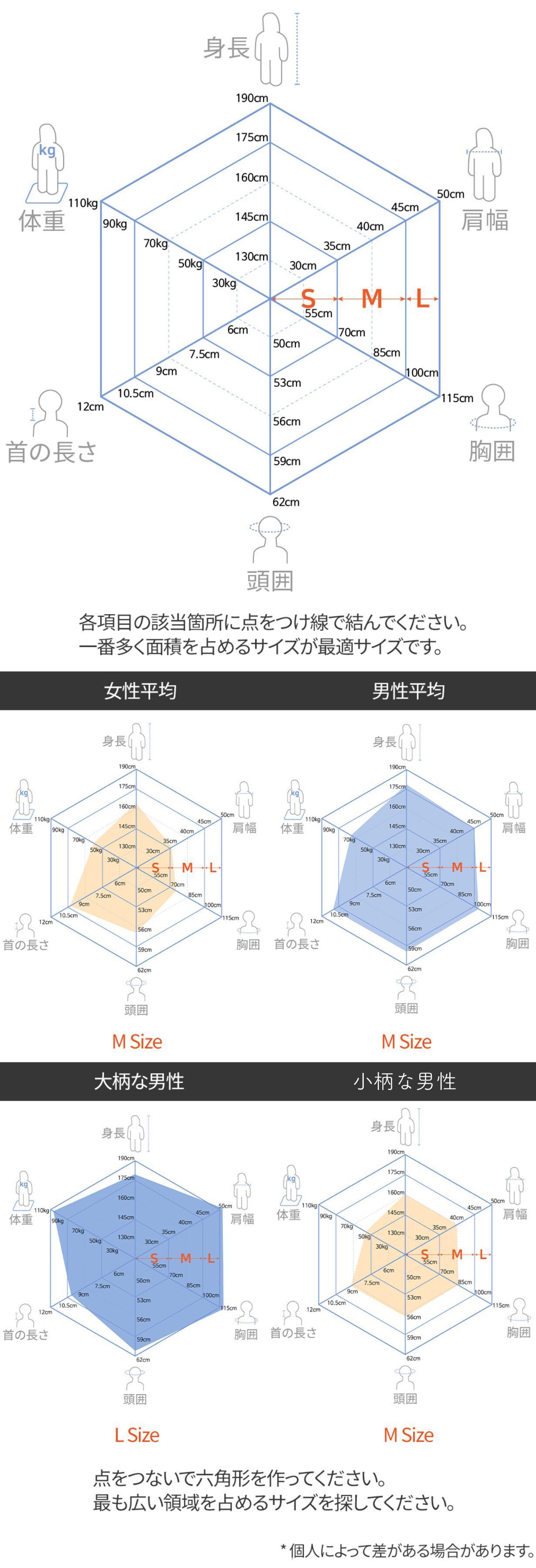 早見表範囲内でご選択いただいても、首の長さには個人差があります。そのため長さに応じ微調整対応できる様に設計しました。