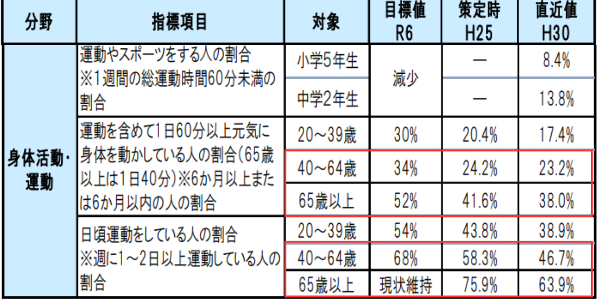 ・1日60分以上運動する割合➡40歳以上2.3%↓減少