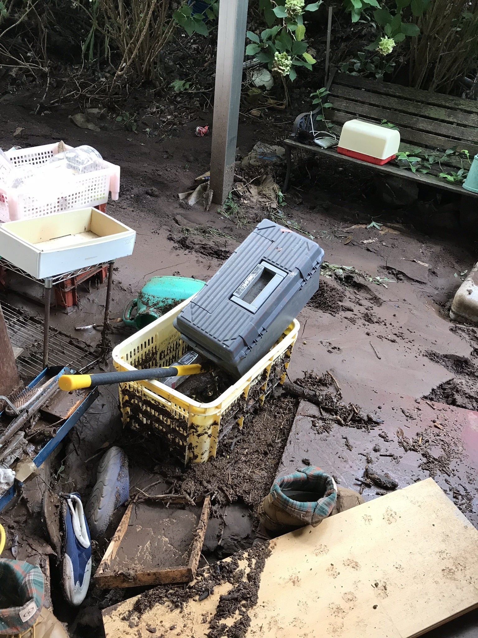 土石流で荒らされた店内