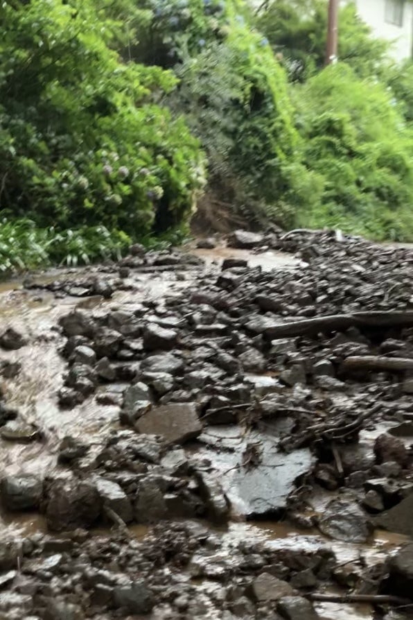 川のようになった当店前の道路