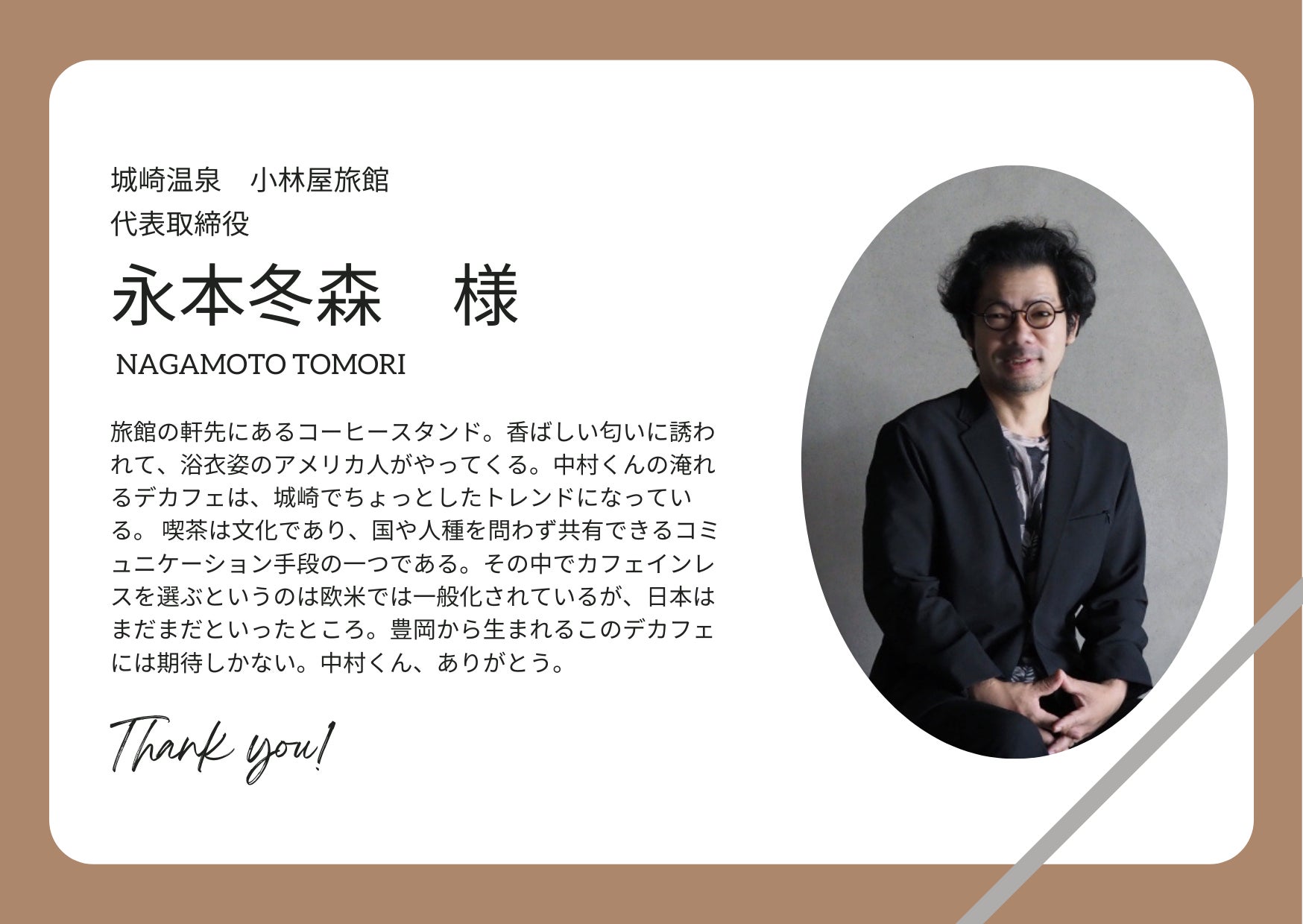 城崎温泉での出店をご協力いただいております、城崎温泉旅館「小林屋」様の永本様より。