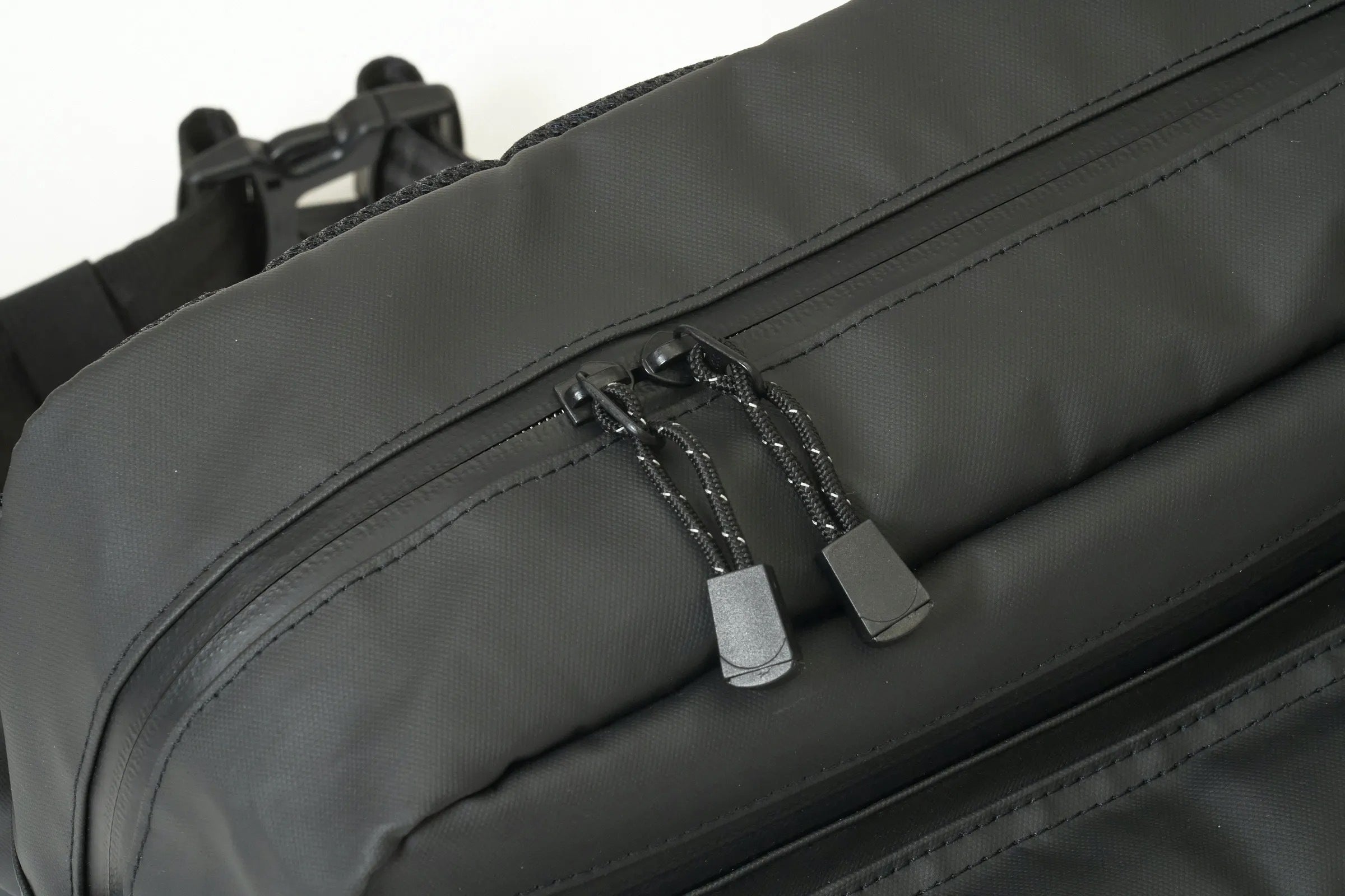 (注意)ファスナーは止水仕様をしており且つ素材は耐水圧に優れた防水機能を有しています。しかしながら、バッグ構成においては通常の縫製を施していますので完全防水ではございません。