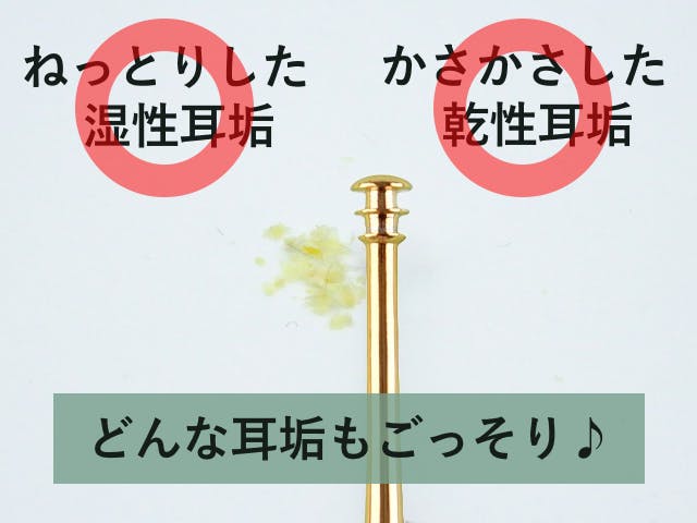 ねっとりした湿性耳垢も、日本人に多いかさかさした乾性耳垢もしっかり絡めとる♪