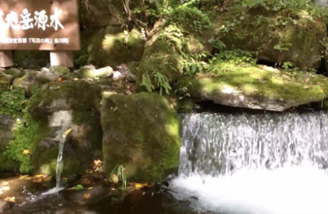 山からの雪どけ水、つまりミネラルウォーターで暮らす町です。