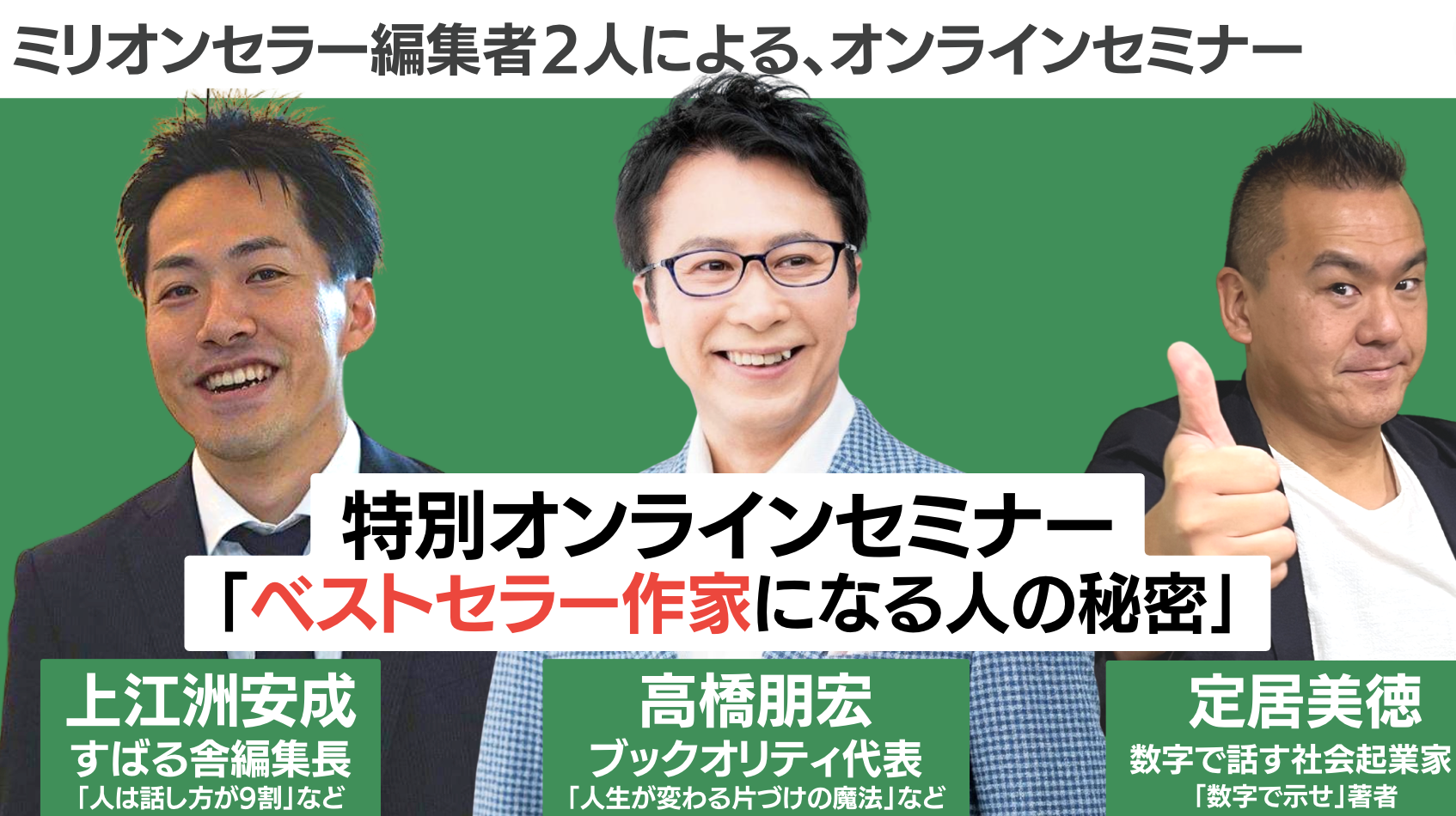 「ミリオンセラー編集者2人による、豪華コラボセミナー」ベストセラーを出すために、