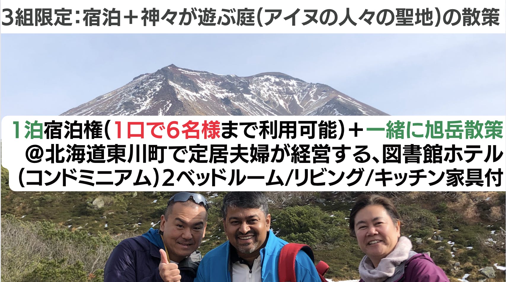 18. 神々が遊ぶ庭(カムイミンタラ)を一緒に散策体験 + 書籍1冊 +図書館ホテル宿泊(6名様まで)¥ 39,390-