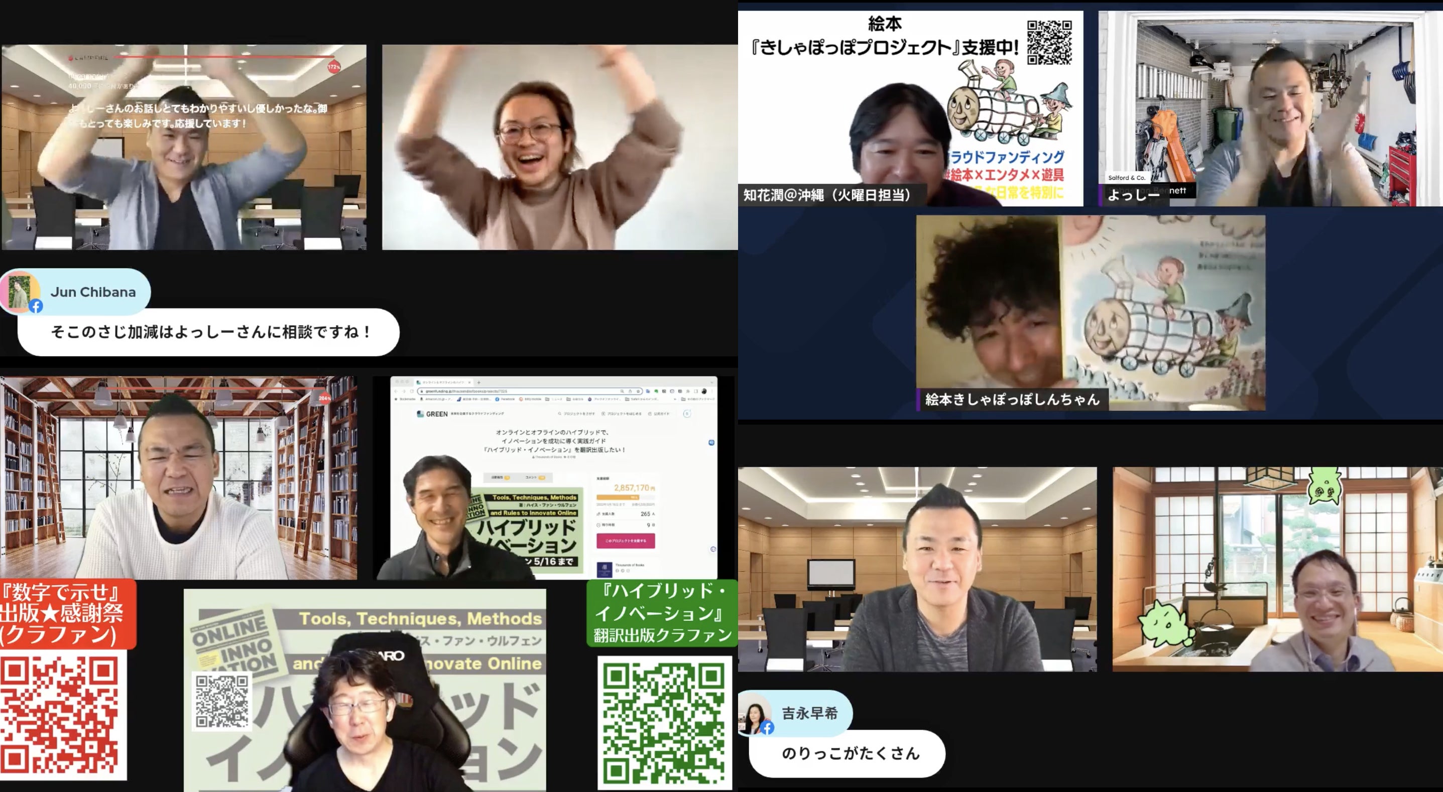 2度と体験できない、初出版を記念した、初クラファンのラストシーン。出入り自由、台本なしのライブですので、チラっと・フラっとお立ち寄りいただけたらうれしいです。