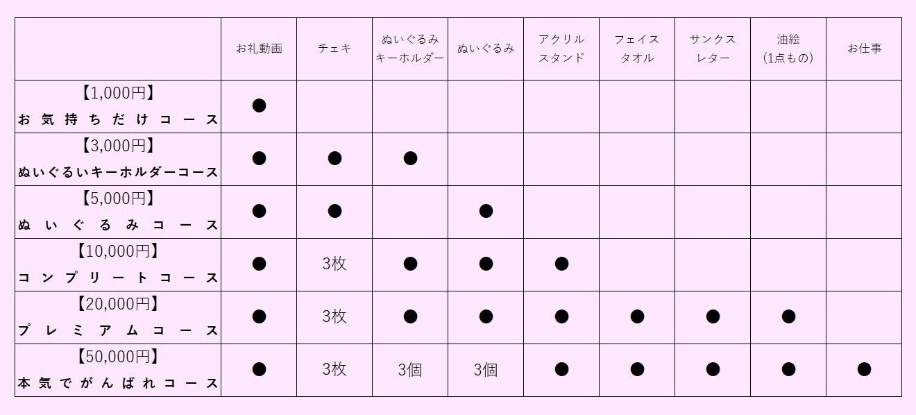 ※リターンのチェキ、アクリルスタンド、フェイスタオル、油絵のデザインは今回のクラウドファンディング限定のデザインとなり、今後のグッズ販売で同じデザインを販売することはございません。