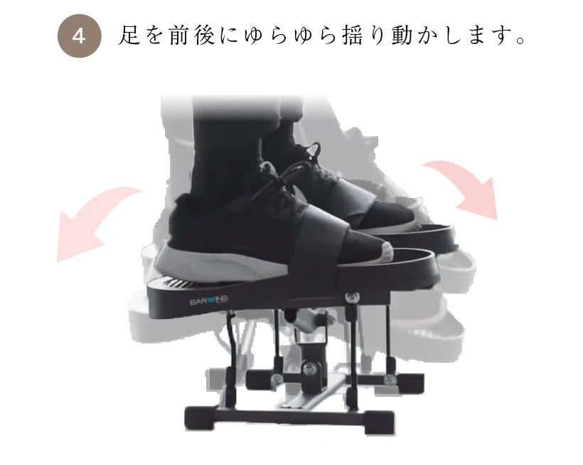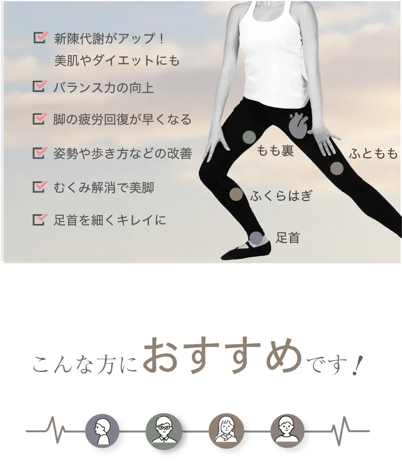 足首、ふくらはぎ、ふとももに効率良く刺激を与えます。