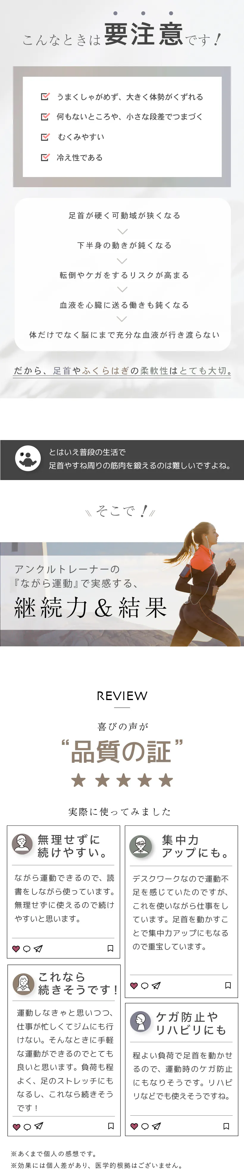エクササイズ器具を買ったものの、なかなか続かずに効果が得られない。。そんな声を元に、続けやすく、効果を実感できる製品が作れないかと試行錯誤したものがアンクルトレーナー です。