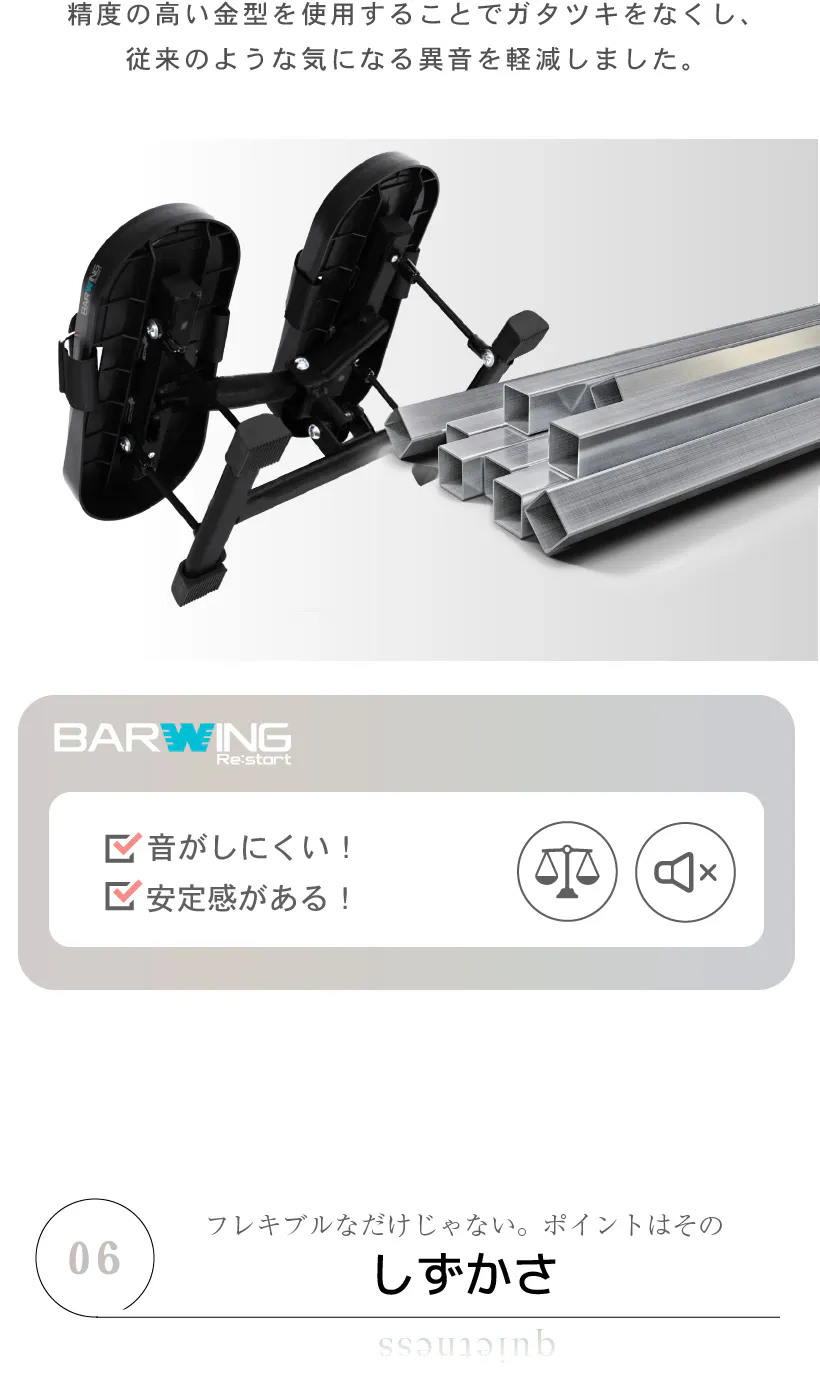 ゴム製の土台を使用することで騒音を軽減。静音なのでアパートなどでも気にせず使えます。