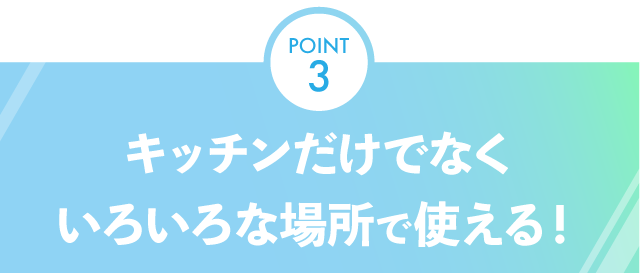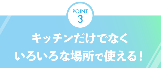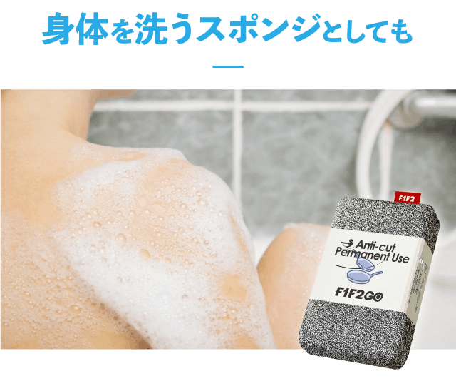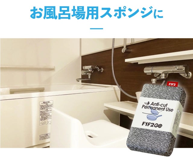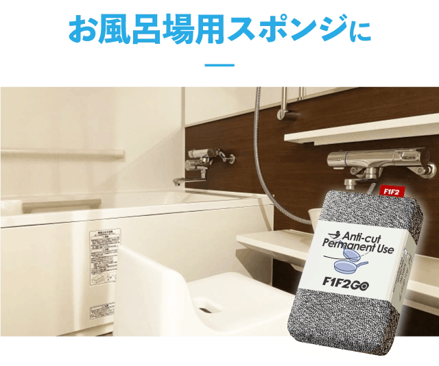 特殊繊維を使ったF1F2GOスポンジは食器用だけでなく、様々な場所で利用可能です。