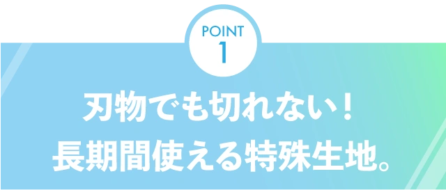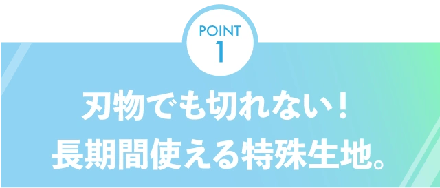 次世代繊維として期待されている超高分子量ポリエチレン繊維を主に使用しています。アメリカでの布耐久テストではA4ランクを獲得。板金加工者の作業用手袋相当の耐切創性です。