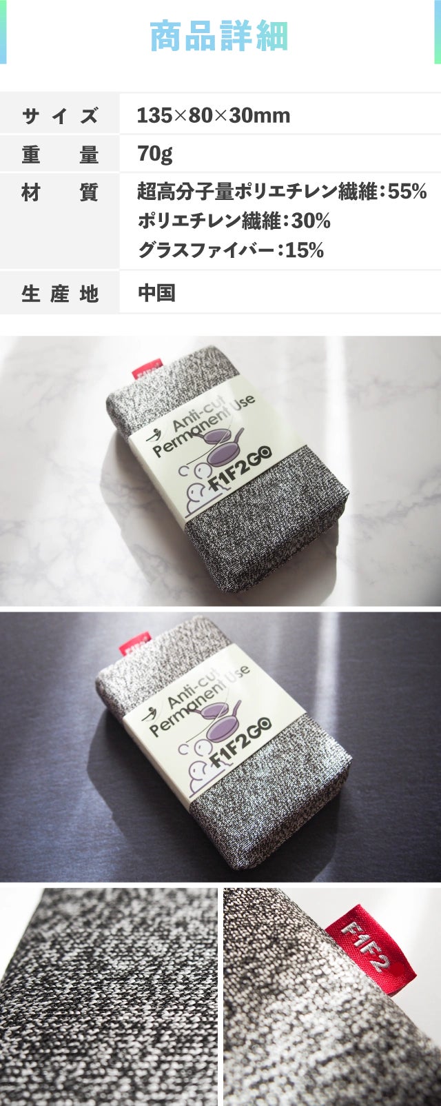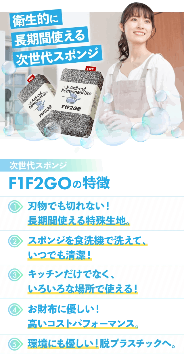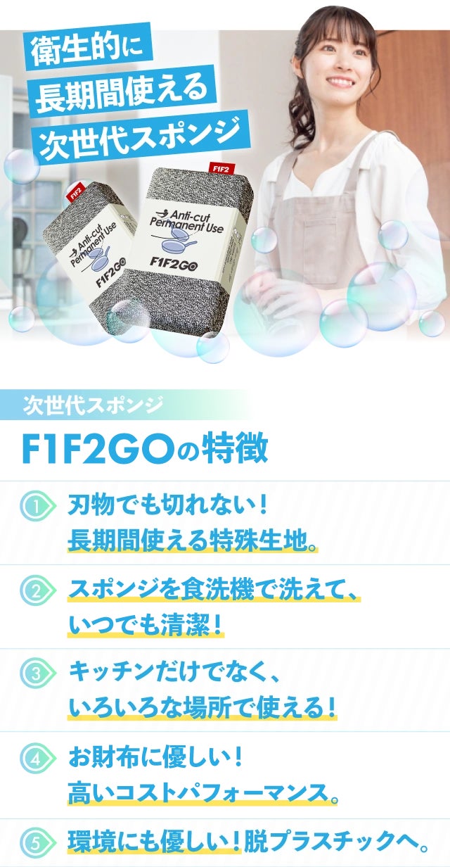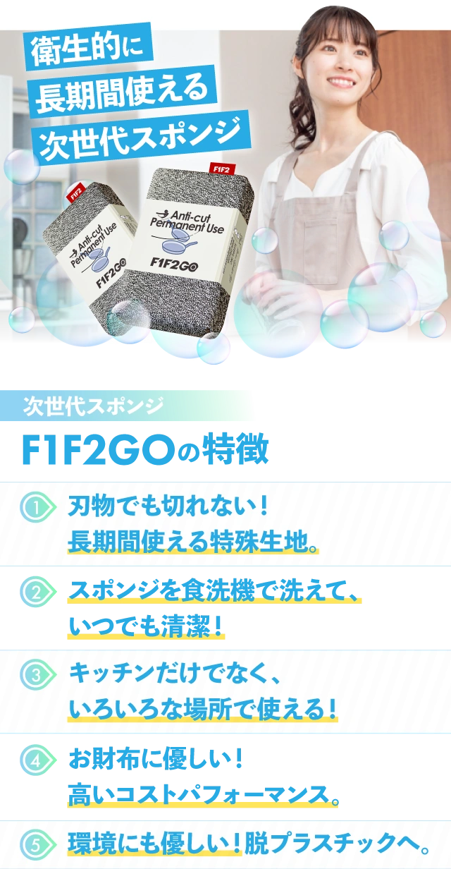 私たちF1F2GOは特殊繊維を得意としている会社です。人生を変える家庭用品を再び日本の消費者に紹介できることを嬉しく思います。これは、掃除に革命をもたらす革新的な製品です。超高分子繊維を使用しているため、鋭利なものを掃除しても怪我をしにくく、スポンジが傷つきません。私たちの情熱と努力が、人々の生活に良い影響を与えることを願っています。