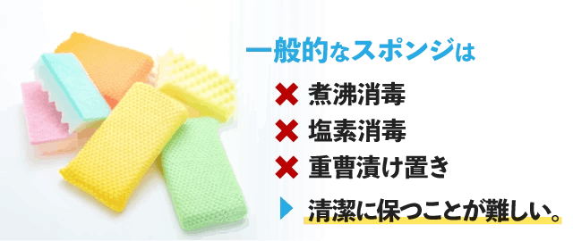多くの種類のスポンジが販売されていますが、ひとつ100円と仮定しても、10,000円。1年間で約1万円をスポンジ代として支払っていることになります。