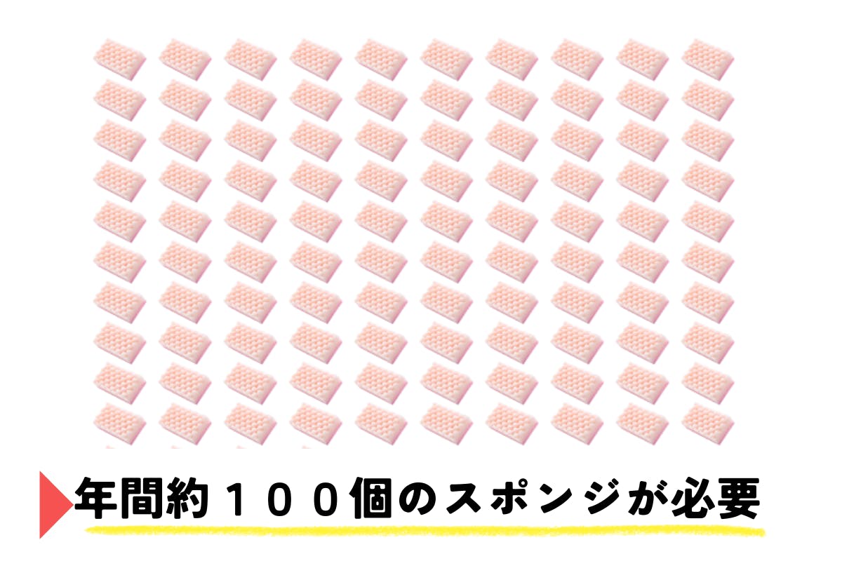 1年間使い捨てスポンジを使ったとすると、約100個ものスポンジを購入していることになります。