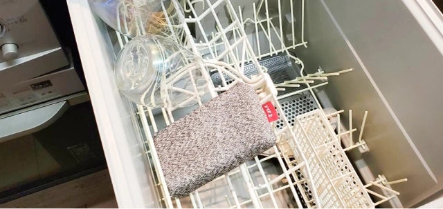 F1F2GOは耐熱温度・耐久性が高いため、煮沸消毒はもちろん食洗機で洗うことができます。洗ったあとのスポンジはまるで新品のような仕上がり!