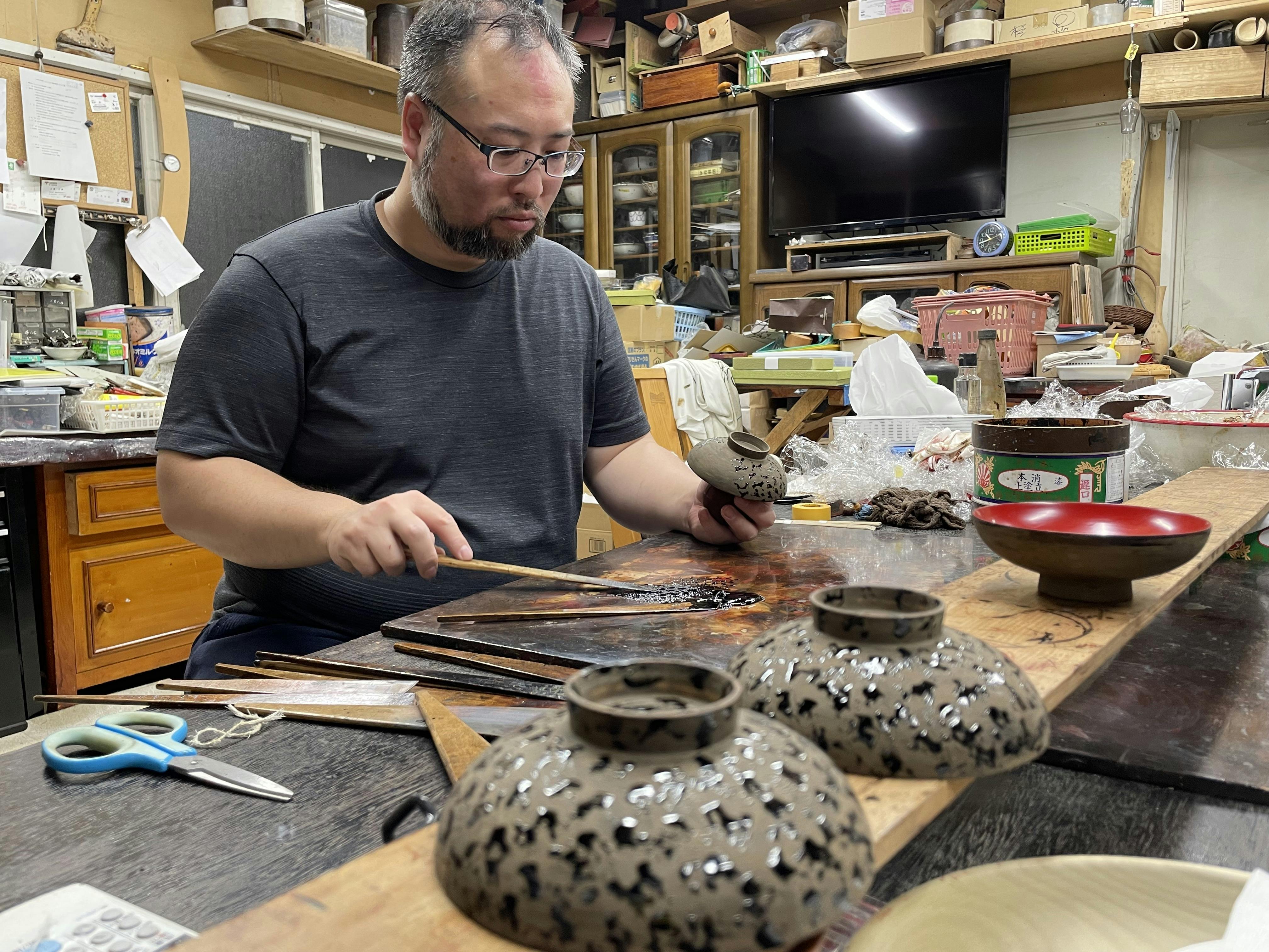 木地制作を依頼している木地師の工房と塗師 松山 昇司氏の松山漆工房の制作風景を見学してきました。