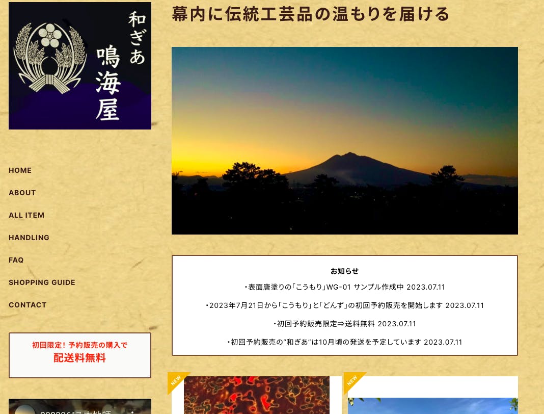 21日(金)からBASE「和ぎあ 鳴海屋」にて初回 予約販売を開始します。