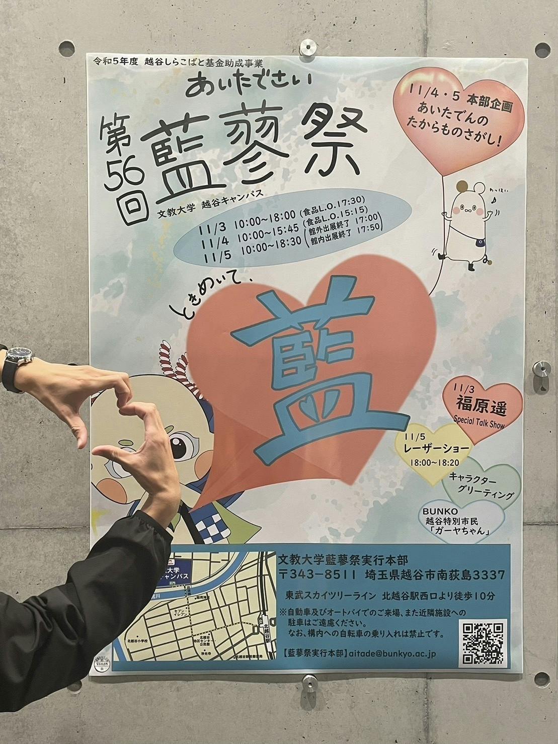 私のイチオシときめきポイントは、パンフレット内にたくさん散りばめてあるハート♡ あともう少しでみなさんにもお見せできるハズ!!みなさんぜひ、ハートがいくつあるか数えてみてくださいね(^ー^)公開までHP・SNS要チェックですよ〜〜!!当日は受付でもお配りできるそうなので、みなさんにお渡しできる日を楽しみにしています。今年のテーマは「ときめいて、藍♡」。ときめきパンフレットを手に、藍蓼祭にときめきを感じに来てくださいね!!