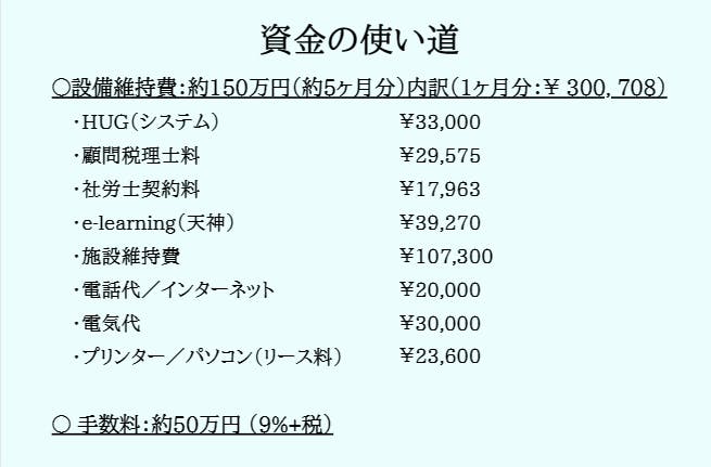 スピカでは、e-Learningなど学習支援の環境整備の為、通常の放課後等デイサービスより経費と維持費が多くかかってしまい、利用者の人数が安定するまで、国保連からの支給だけでは運営が厳しい状況が続いています。