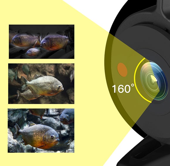 ▼160°の広角レンズを採用。水中を広く見渡せます。