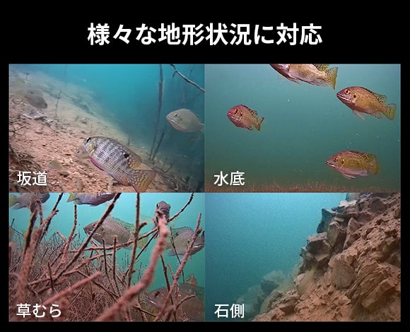 ▼高感度CMOSセンサーにより、複雑な海底地形や水質汚濁の水中でも撮影可能です。