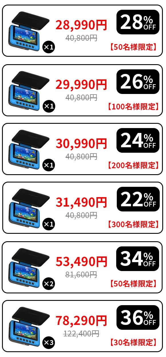 2023/04/03 18:55ページをご覧いただいている皆様、こんにちは!釣り用水中カメラ「FDV3000」プロジェクトスタート!プロジェクトページをご覧いただき、誠にありがとうございます。「FDV3000」の特徴►広角160°レンズ・100万高画素数カメラ採用、水中の観察・記録を同時に実現!►LED光源の集魚ライトを2個搭載、魚群引き付け効果抜群!►耐荷重50kgの高張力ケーブル付属、リールで自由にケーブル制御可能!►赤外線モード搭載で夜間も使用可能!商品についてご質問、ご不明な点がございましたら、お気軽にご連絡ください。目標達成に向けて頑張りますので、どうぞよろしくお願いいたします! 株式会社アースリボーン もっと見る