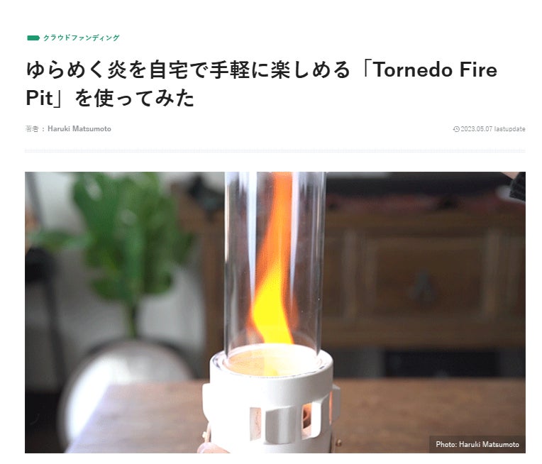Tornedo Fire Pitをライフハッカーメディアにて記事にしていただきました。 着火も消火も超簡単!アウトドア、自宅で焚き火気分が味わえる本格ファイヤーランプ!https://www.lifehacker.jp/article/machi-ya-TornadoFirePit-review-662635/