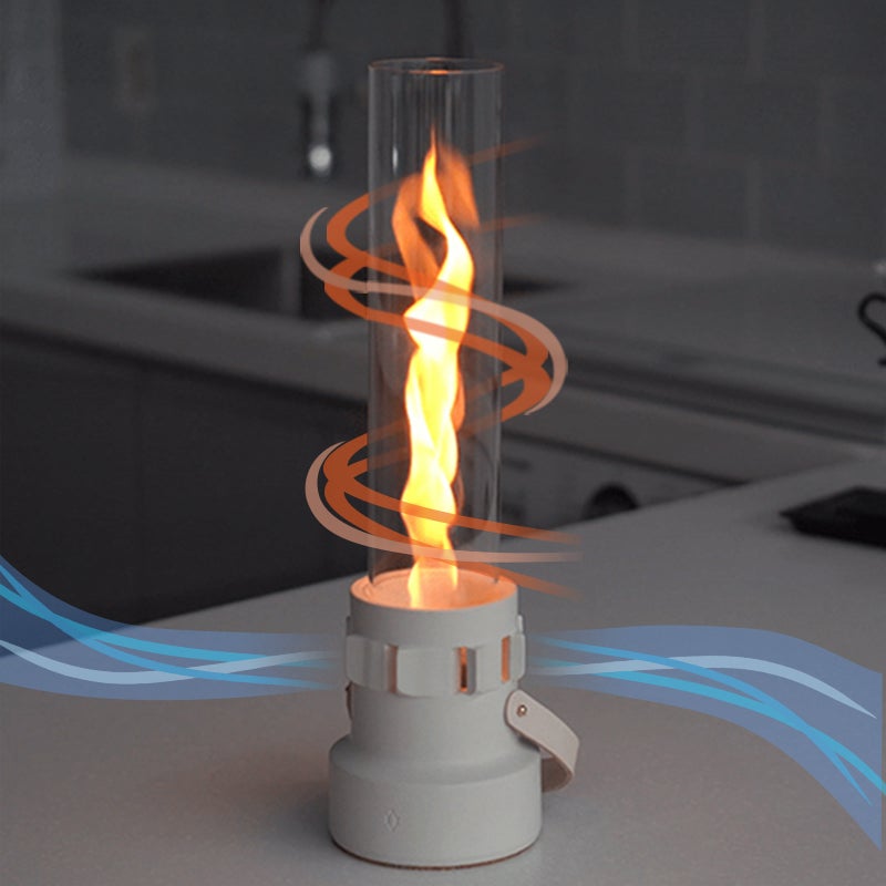 8つの窓から入り込んだ空気が、ガラス管の中でスクリュー状に旋回しながら炎を持ち上げる、