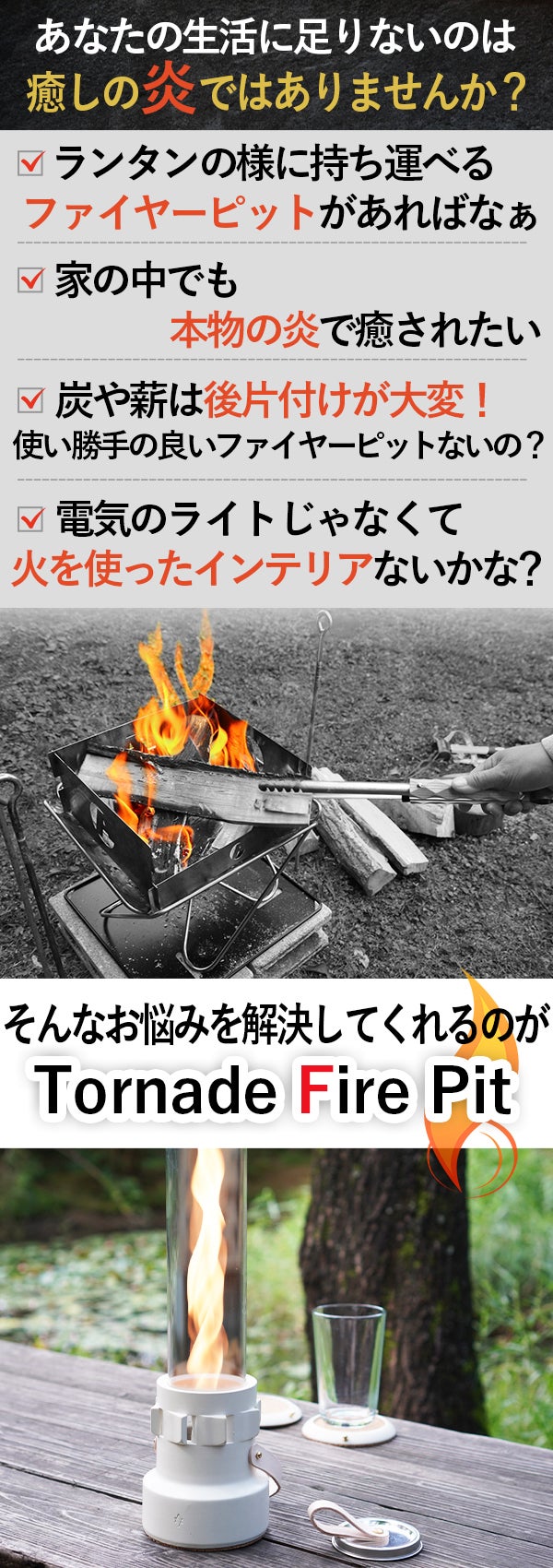 今回、ご紹介をするTornade Fire Pitがあれば、いつでも、どこでも焚き火気分が味わえますし、災害時の備えにもなるので自信をもってオススメします。忙しい日常にひと時の癒しの時間を皆さまにお届けできることを楽しみにしております。