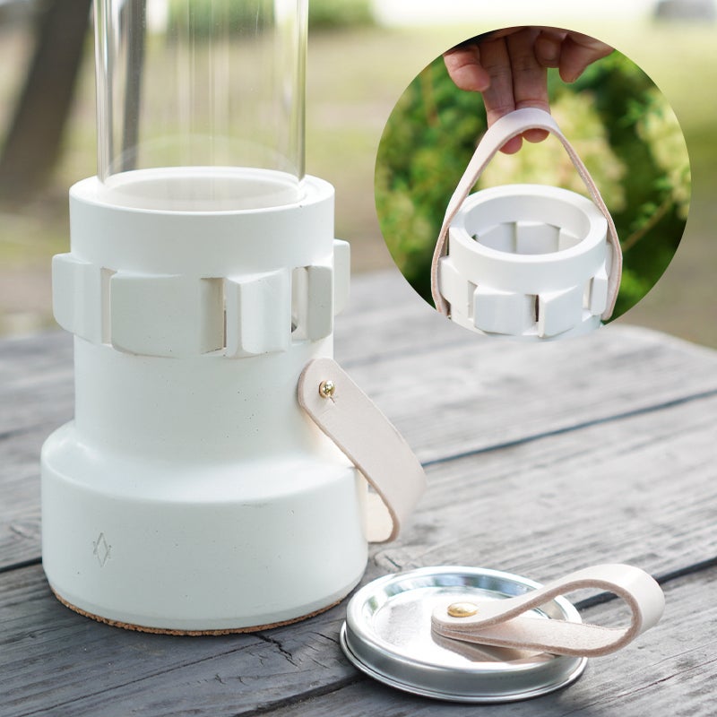 ホワイトコンクリート、ゴールドメッキ、天然皮革、ドイツ製高級耐熱ガラス、ポルトガルコルクからなる高級感のあるデザインが魅力的です。
