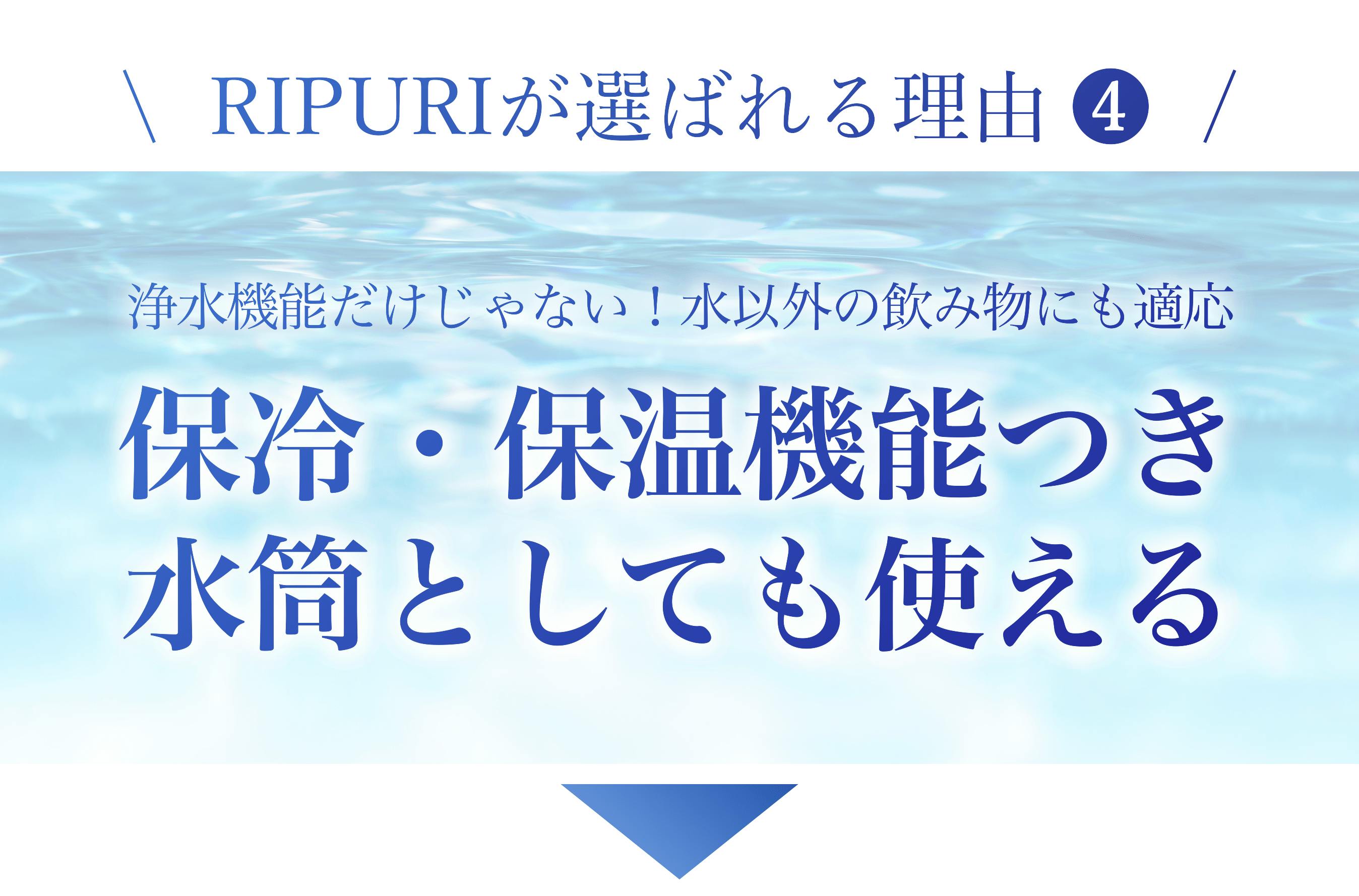 RIPURIは、浄水ボトルでは珍しい保冷・保温機能付き。
