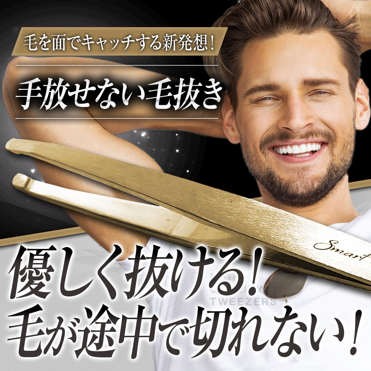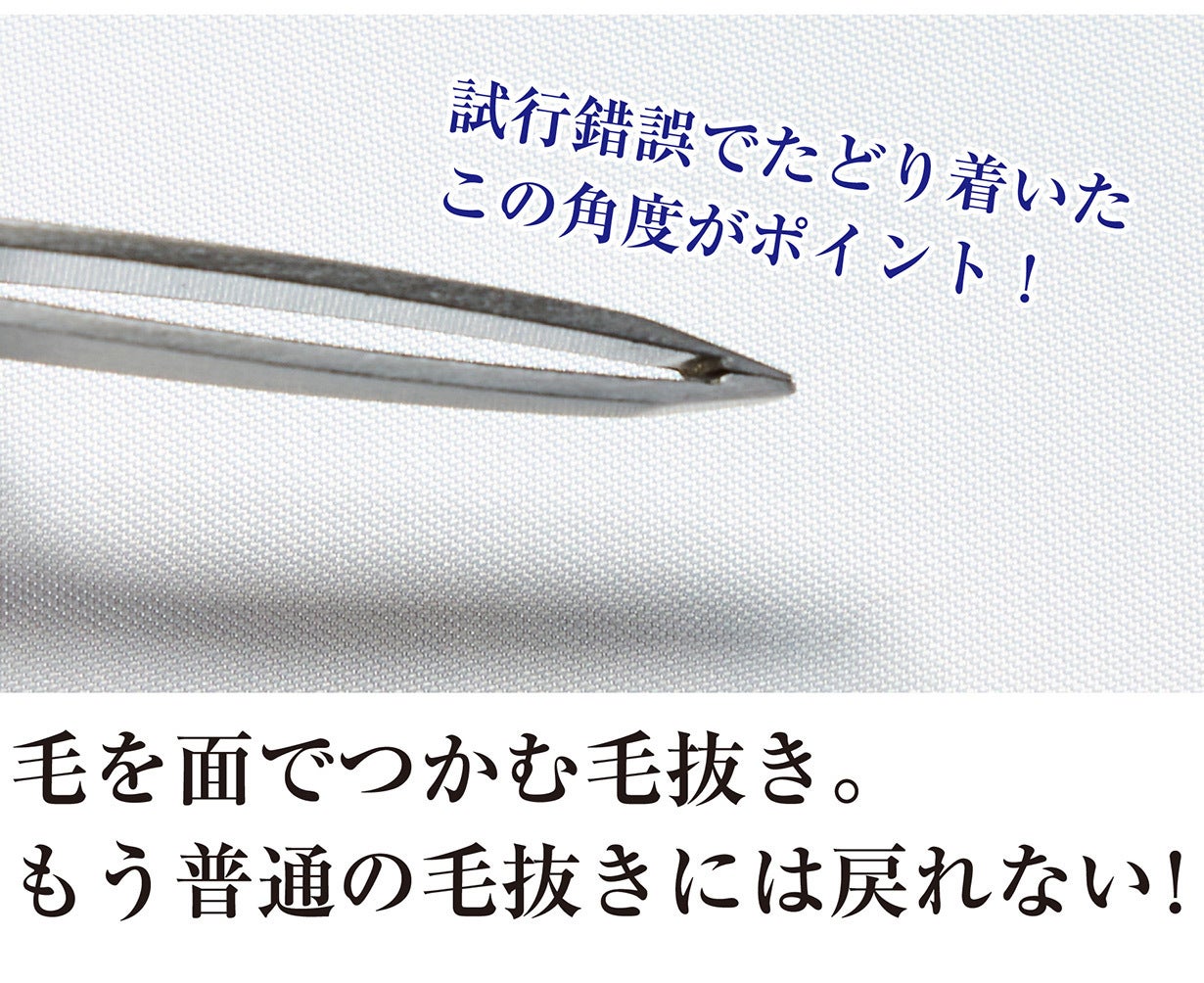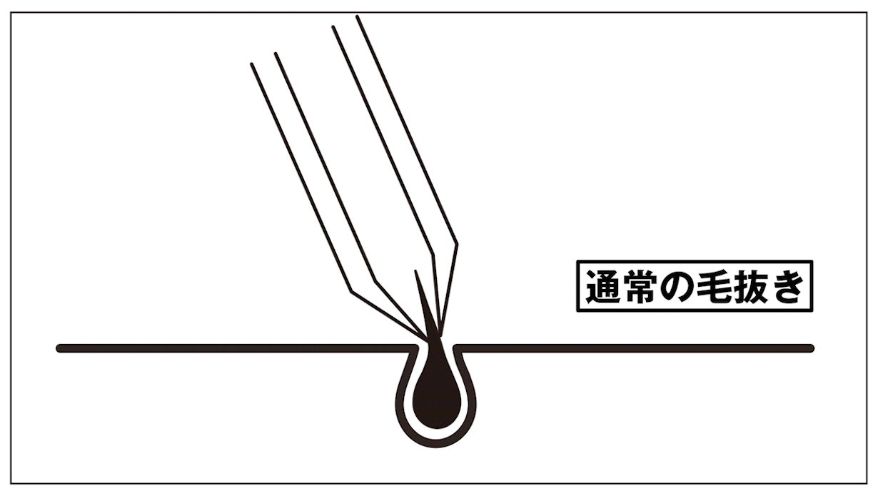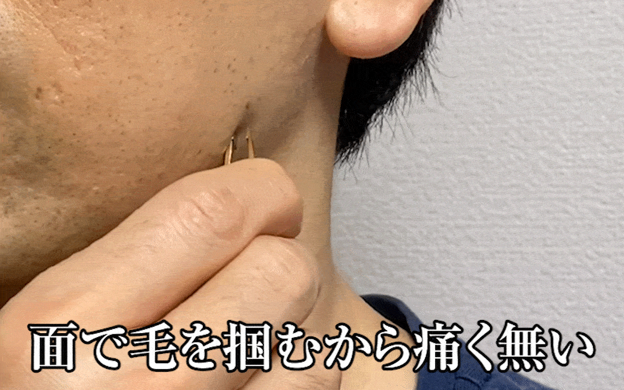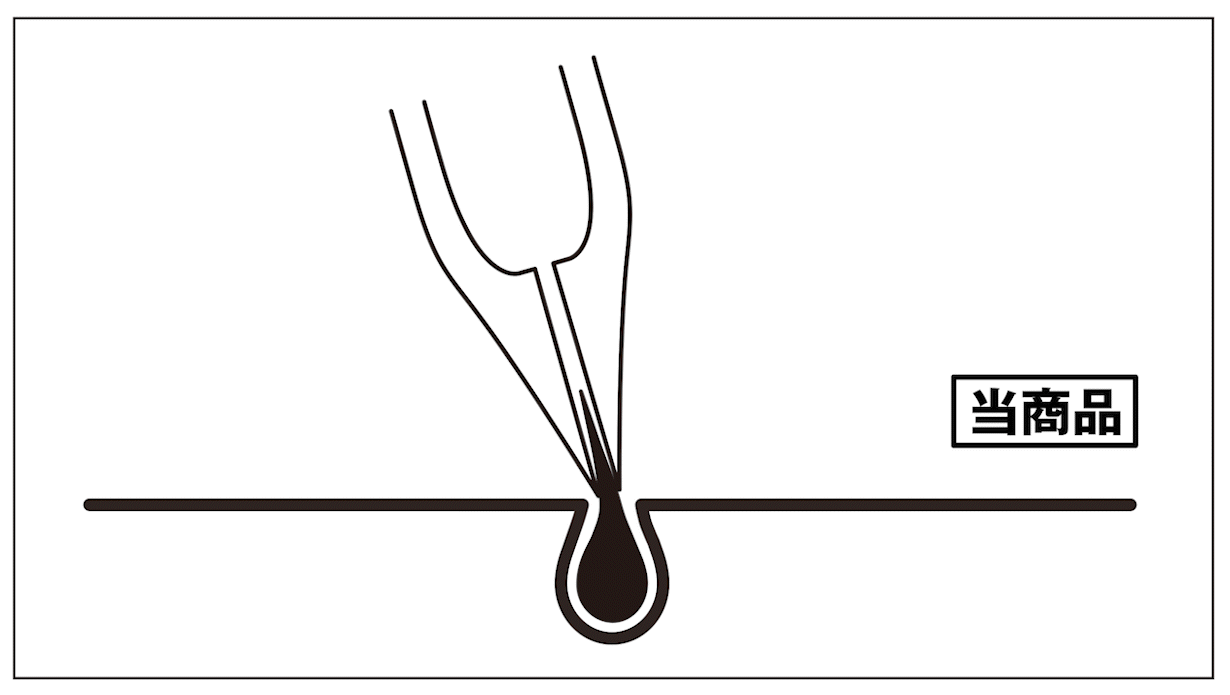 面で掴むことで力が分散され、痛みも軽減されます。さらに毛が途中で切れる事なく抜く事が出来ます。