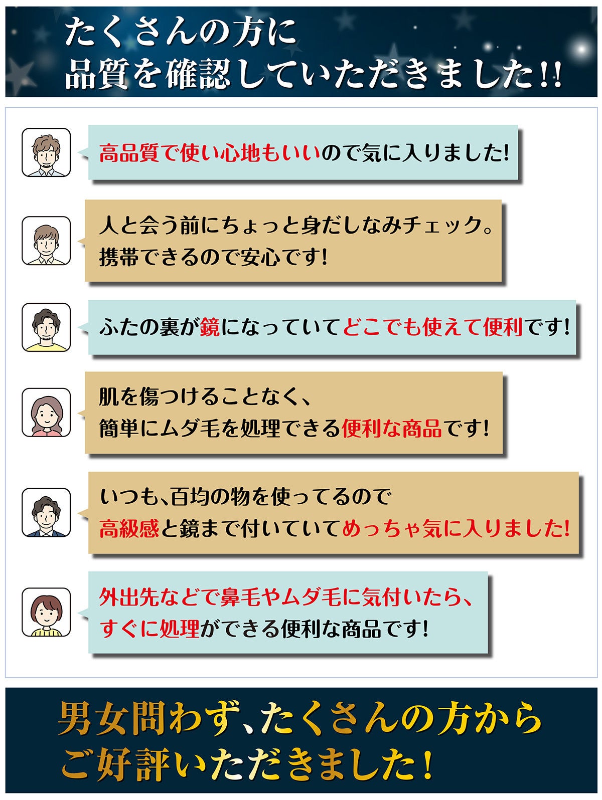 鼻毛だけじゃない!!耳の毛や髭など、あらゆるムダ毛をカンタンに処理できます。
