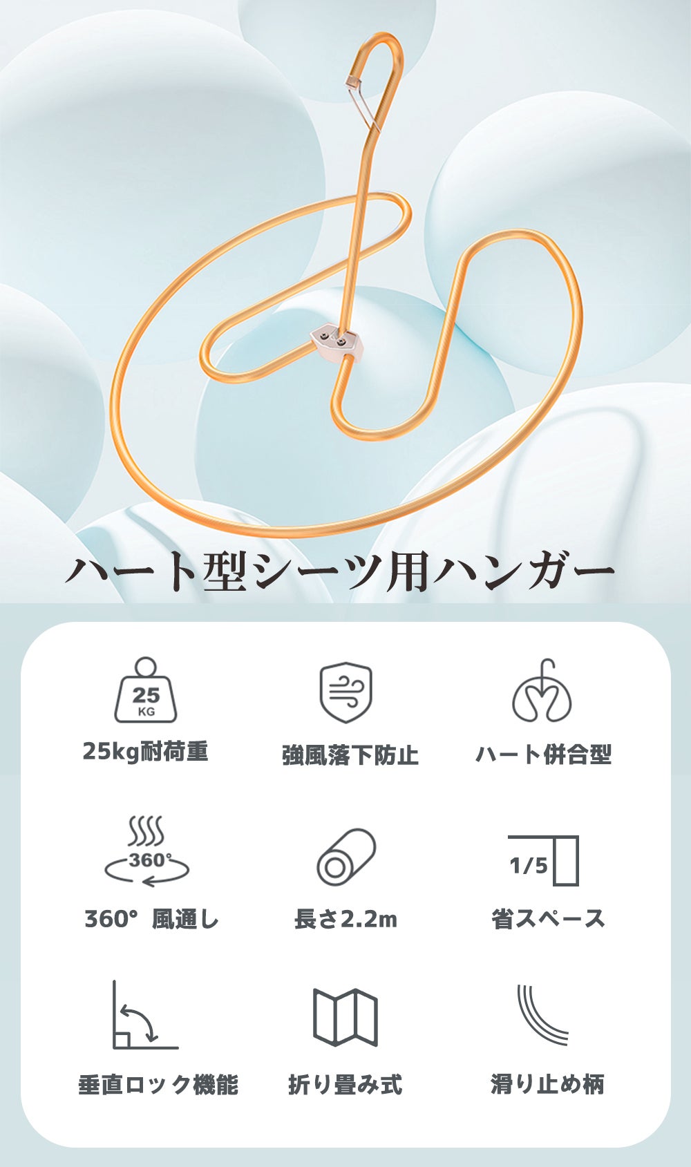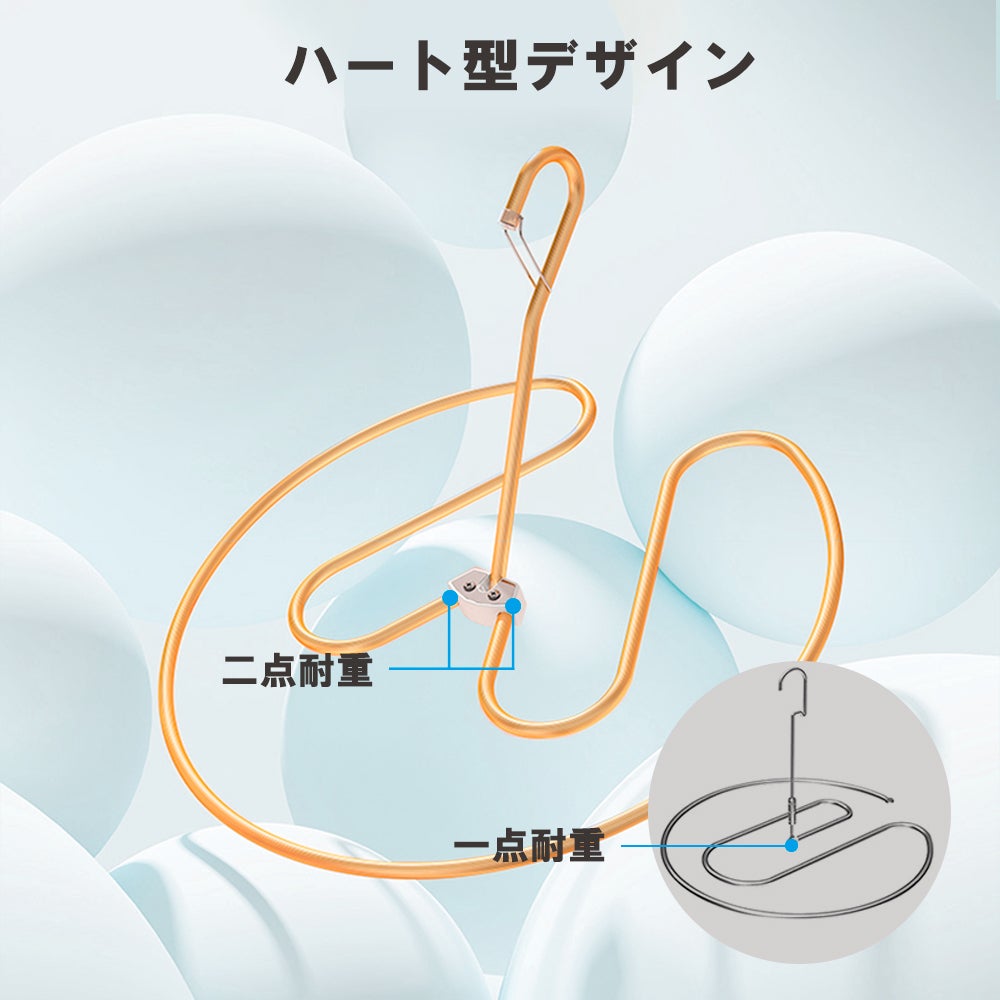 これらの悩みを解決するために、スペースを取らない、落下防止機能付き、壊れにくい、操作簡単なハート型ハンガーが登場しました!