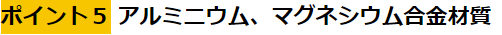 アルミニウム、マグネシウム合金はリサイクル性、耐くぼみ性が高く、アルミニウムより固く、軽い素材になります。