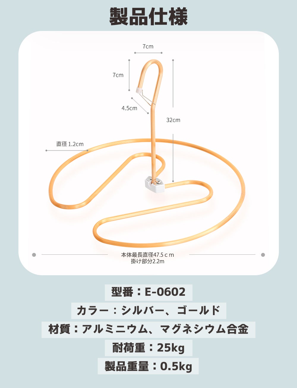 長さ2.2m!市販のハンガーより20cm増え、シングルからダブルまで対応可能です。掛けて、しっかり伸ばすだけで簡単に使用できます!