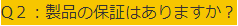 A2:本製品は3ヶ月間製品保証(製品の構造上の不良などに対する保証)がございます。何かありましたら、お気軽にお問い合わせください。