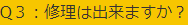 A3:本製品の特性により、修理は対応出来かねます。