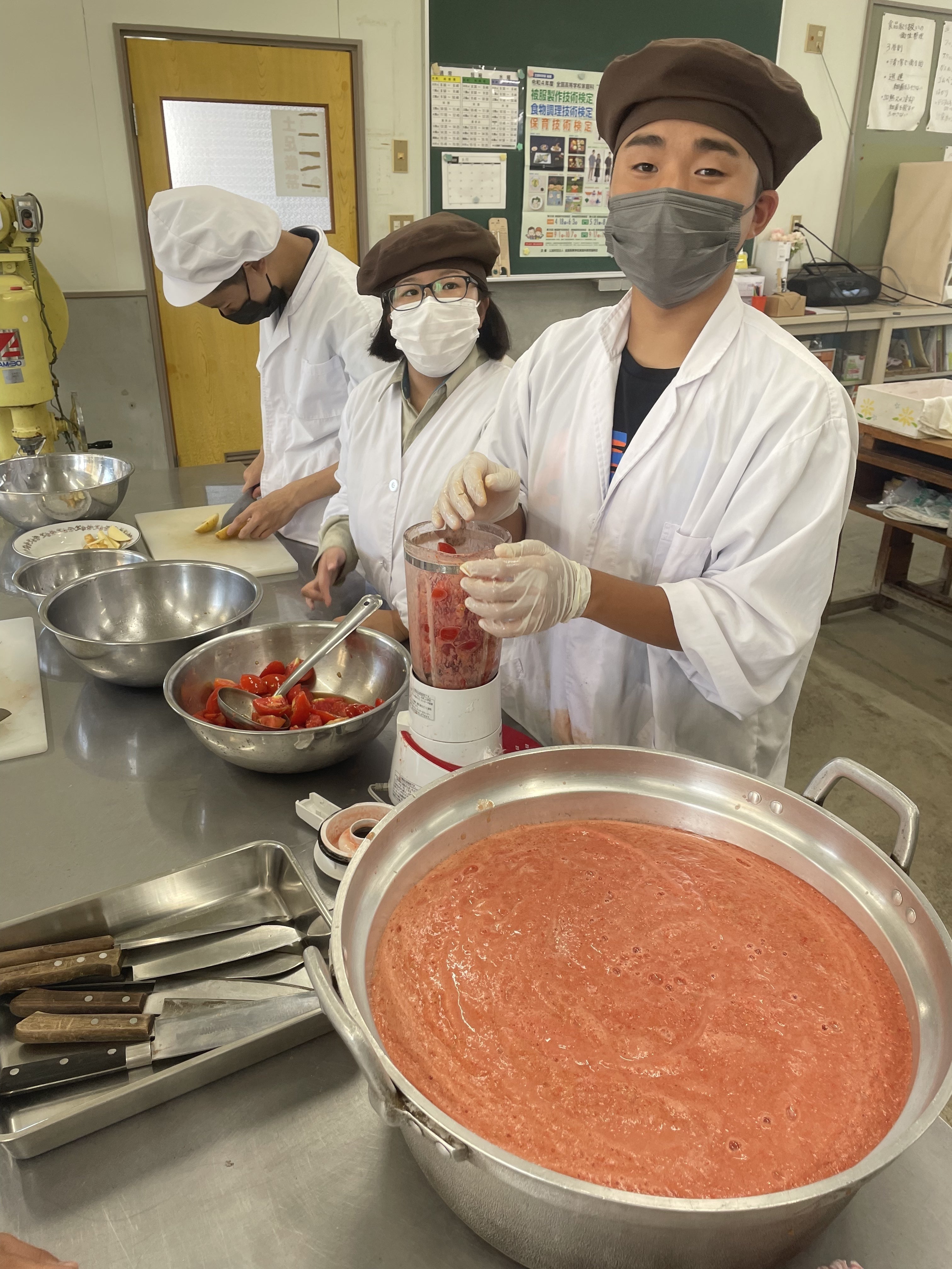 私たちは稲葉学園高校で学校独自の教科働くことを学ぶ『総合実習』で、食品加工を学習しています。