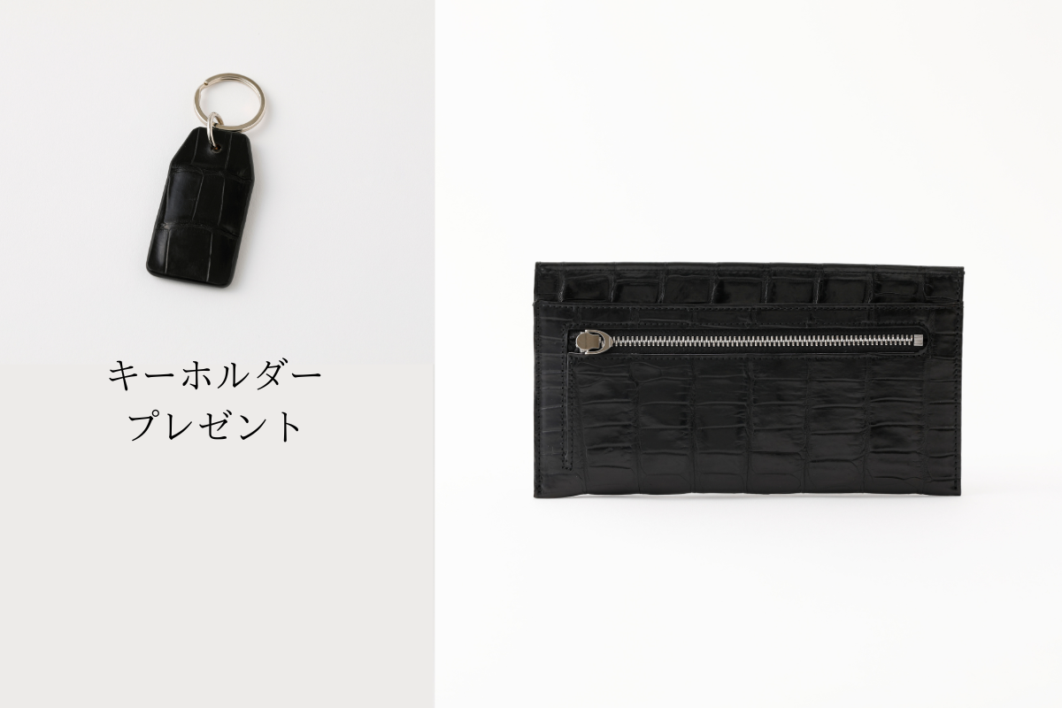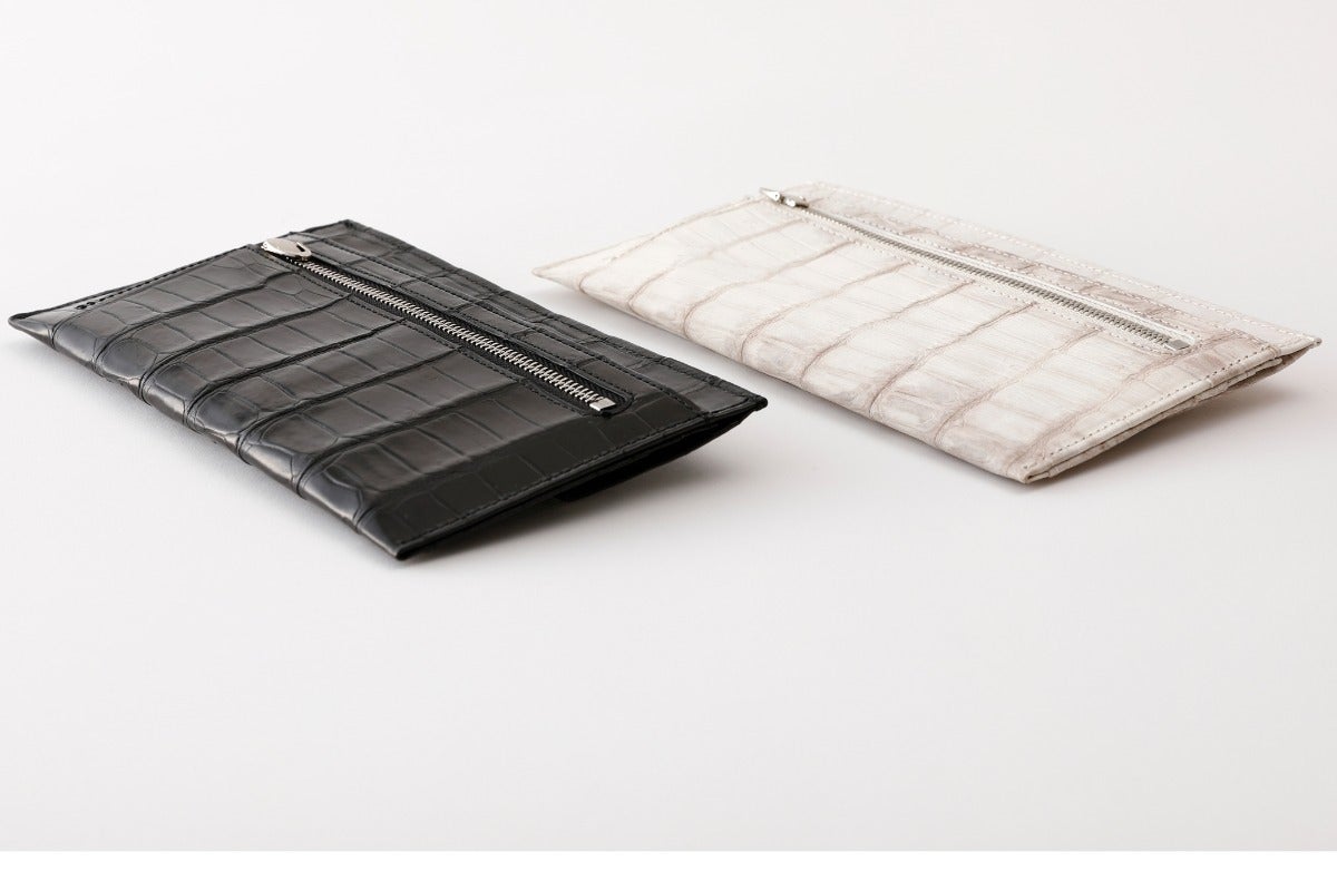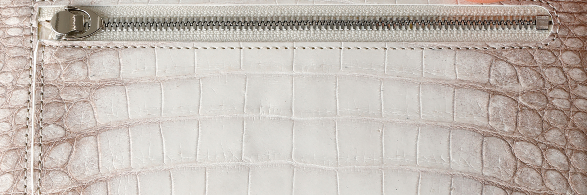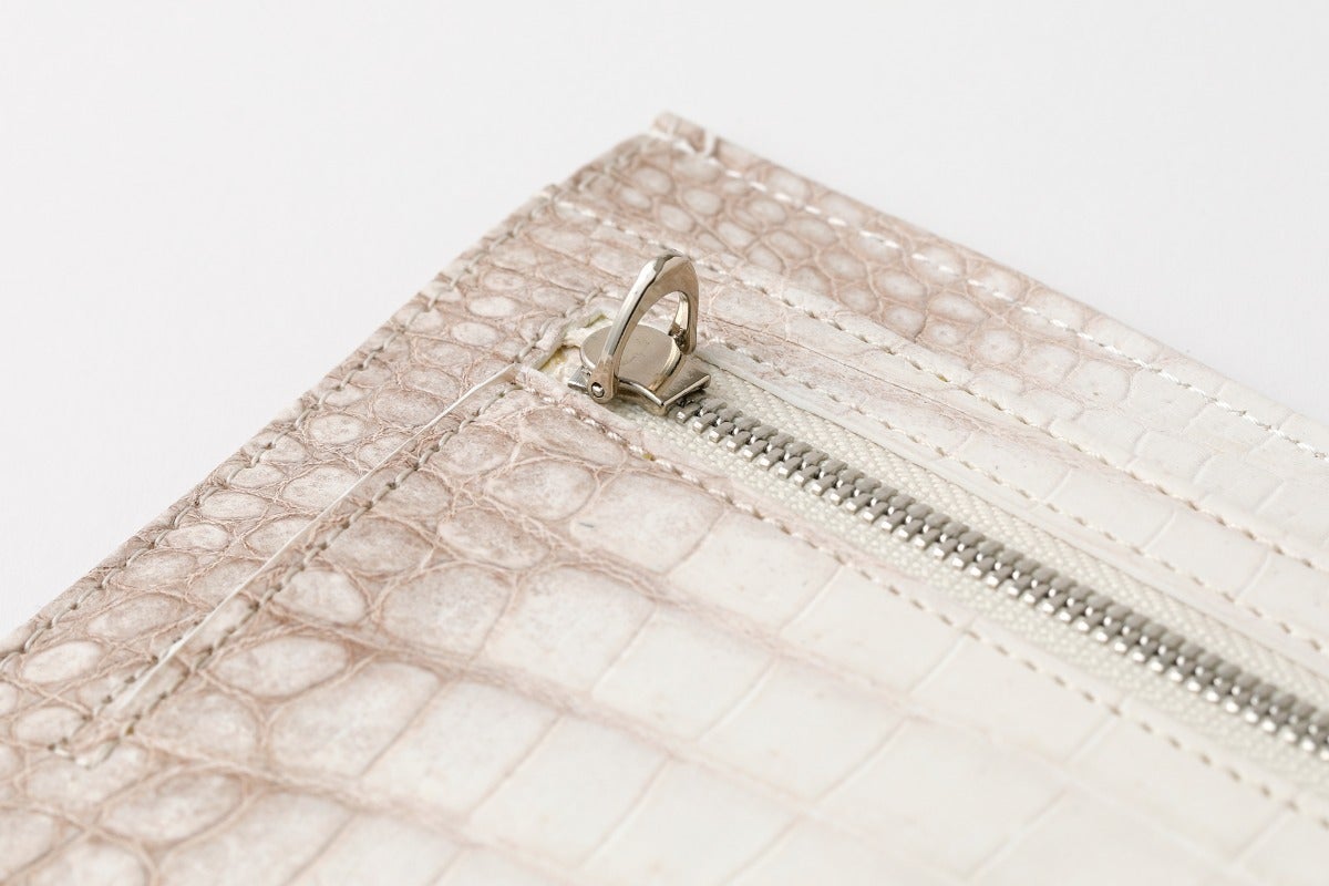 ファスナーはシルバーカラーで、クロコダイルに美しく映えます。