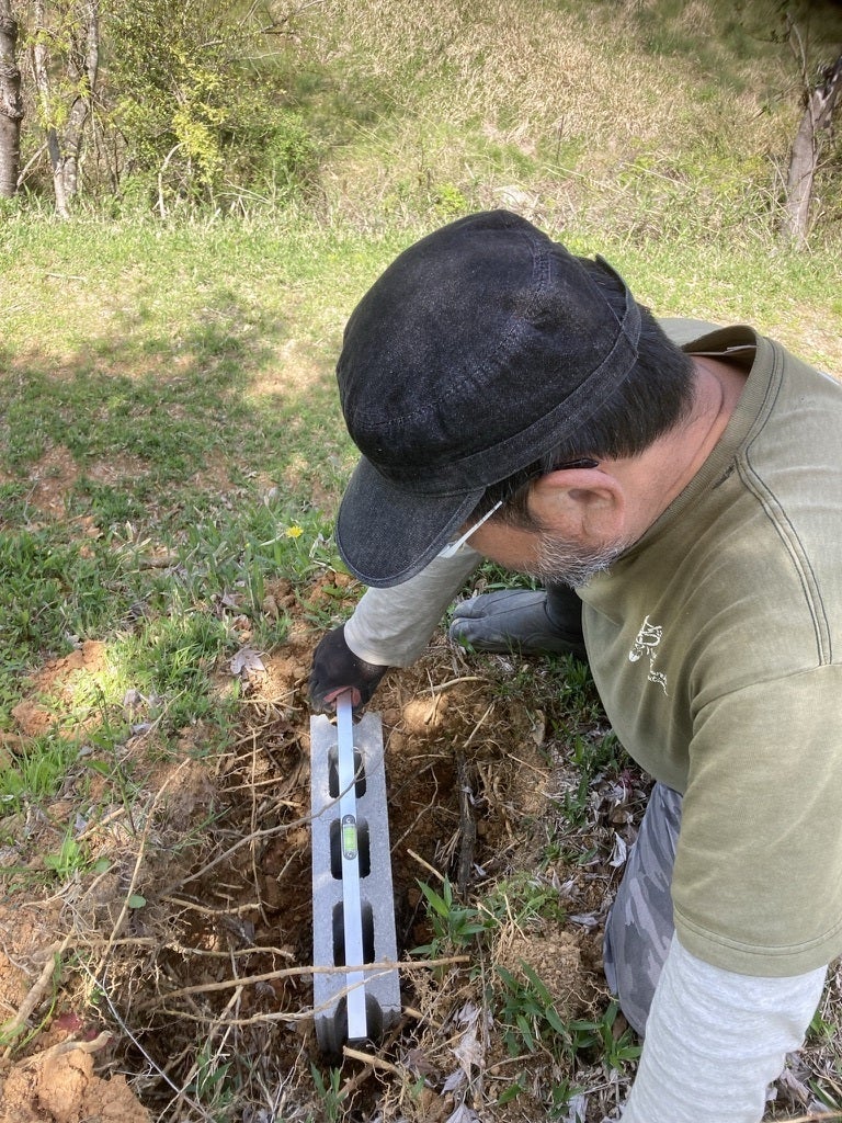 まずは、ユンボさんが掘ってくれた穴にブロックを置いて、